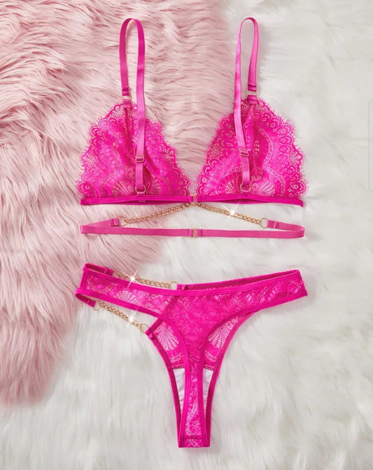 Conjunto encaje rosa talla (S-L)